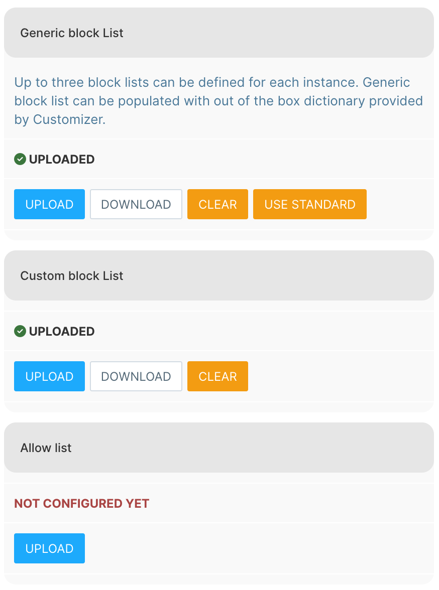 The Advanced moderation service, both text and image-based moderation, allow to define: