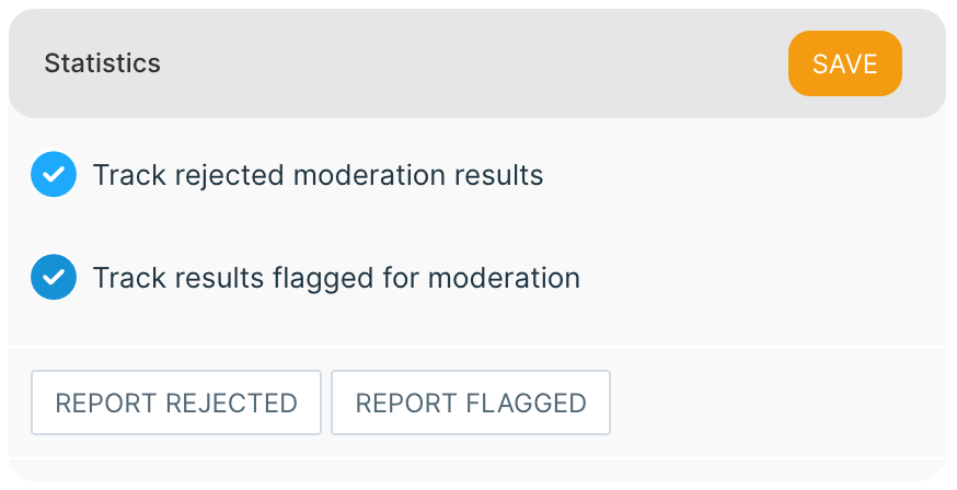 When tracking is enabled, it is possible to generate reports for each moderation outcome category.