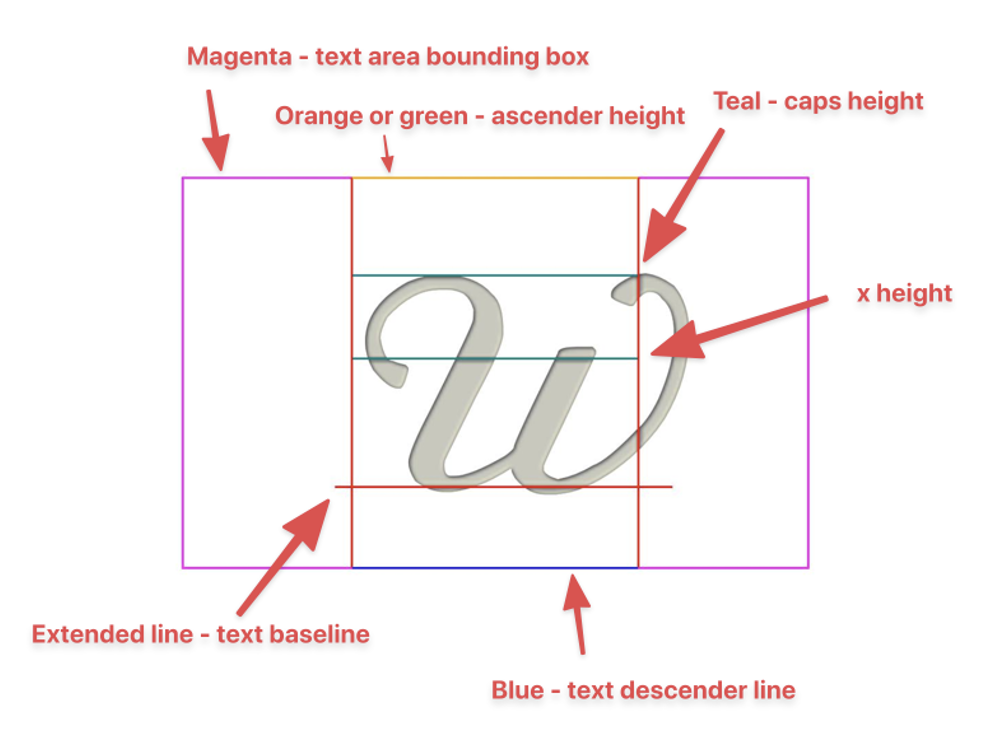 ![]() Centered horizontally/vertically, no autosizing. Note that the text is centered using it’s typographic bounds | ![]() Centered horizontally/vertically, no autosizing. Unlike typographic layout, the text is “dead-centered” within the text area. However, consider your aesthetic needs as well: As font designers may allow some characters to overflow a character box, overall effect text positioning may feel less balanced than typographic layout. |