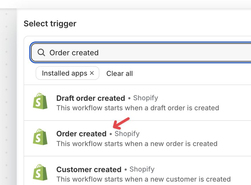 Select a desired trigger — Order Created or Order Cancelled