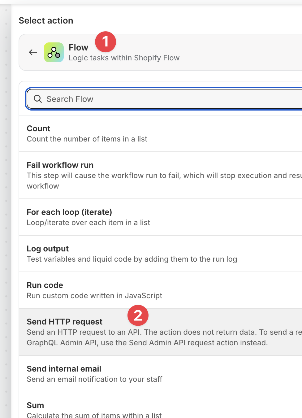 And select Sent HTTP Request under Flow category