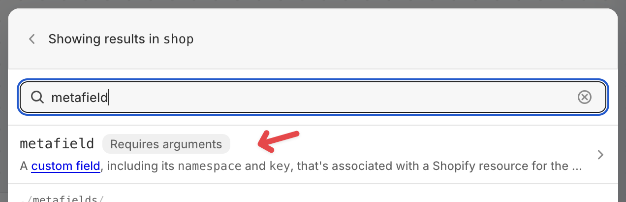 Search or scroll down to find and select metafield variable