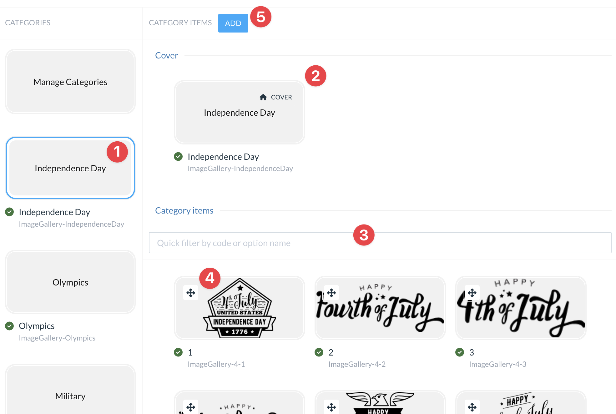 After the gallery management UI is loaded, the user is presented with the category management screen: